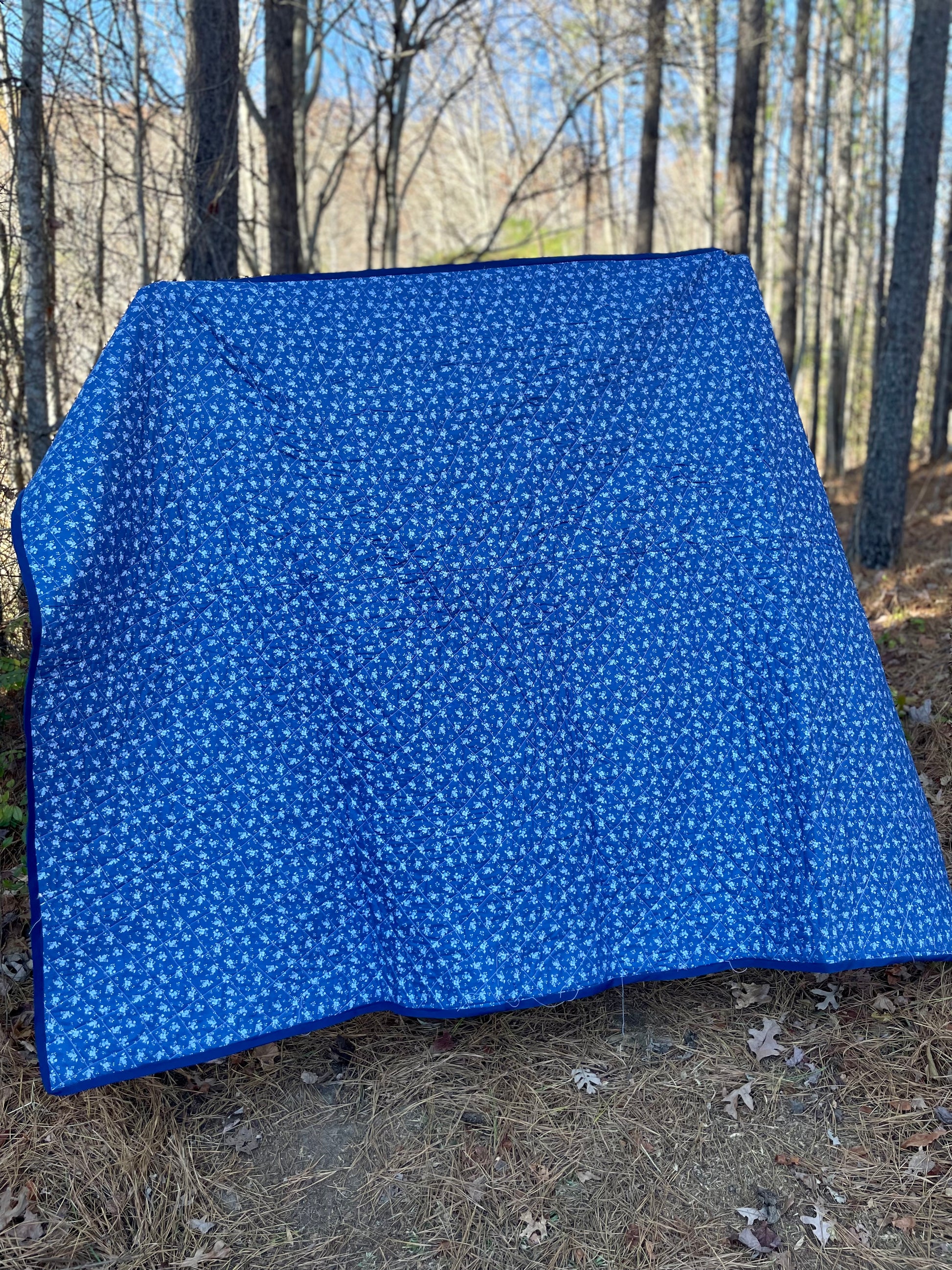 The quilt is quilted in a diamond pattern, adding a unique touch to the design. It is sure to be a cozy addition to any home.