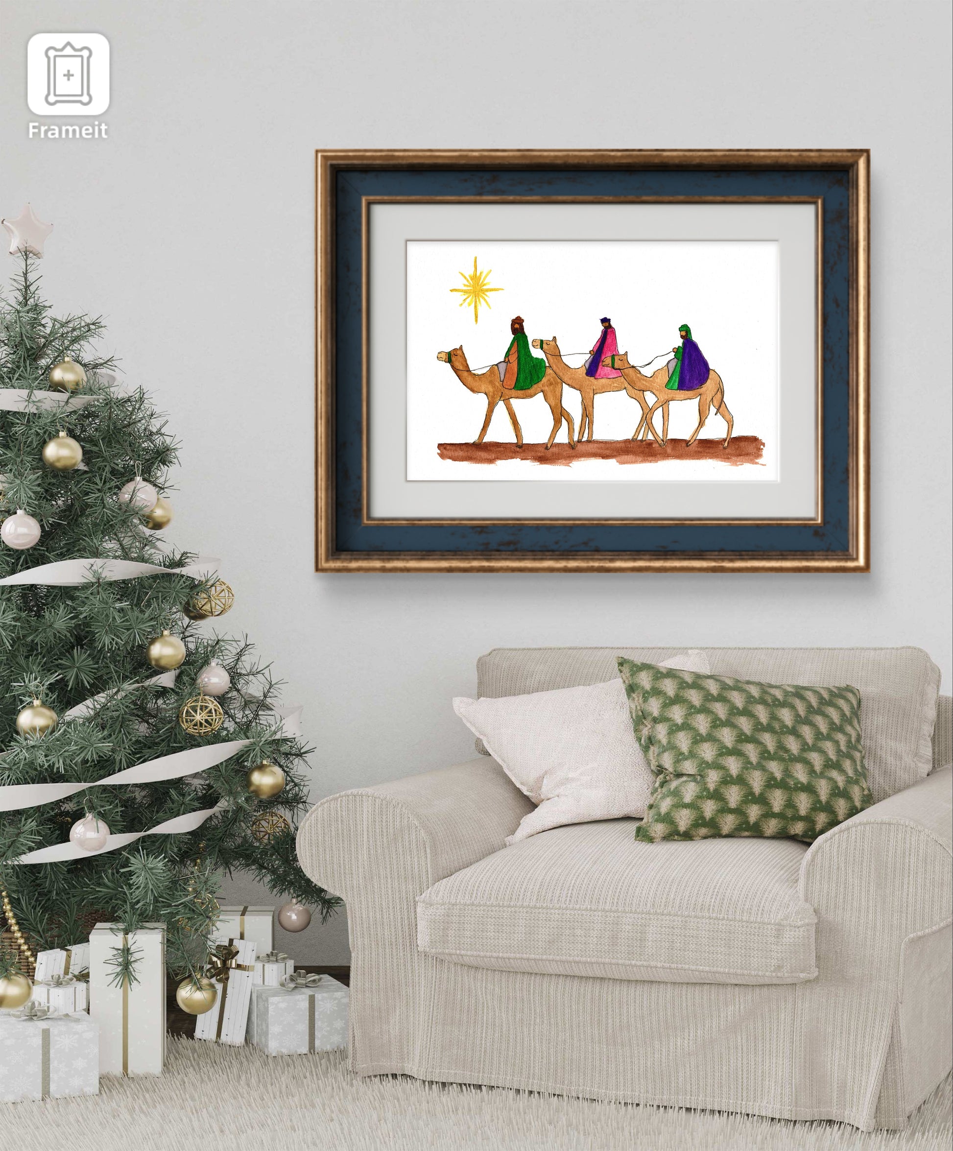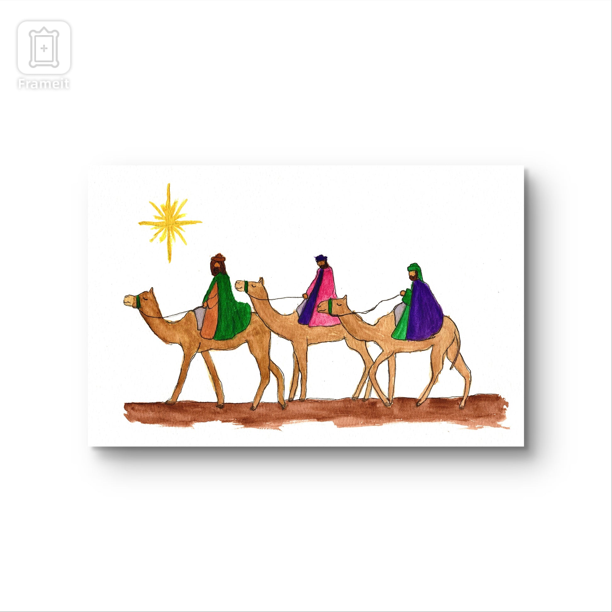 Discover the beauty of the Christmas story with our "Following a Star" watercolor painting. Expertly crafted, this piece depicts the three wise men as they follow the guiding star to the newborn King. A stunning addition to your holiday decor.