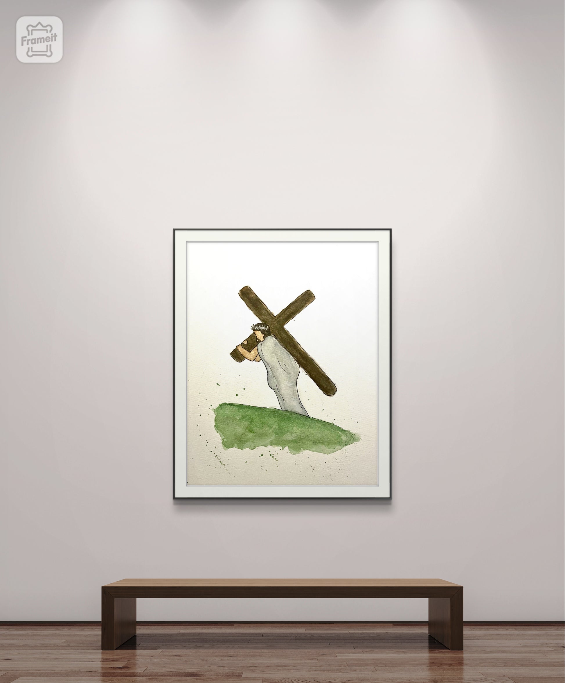 Witness the faith and devotion of Jesus in "Going to Calvary." This beautiful watercolor painting captures the somber yet powerful moment of Jesus carrying his cross to Calvary. A meaningful addition to any space, this piece serves as a reminder of sacrifice and redemption.