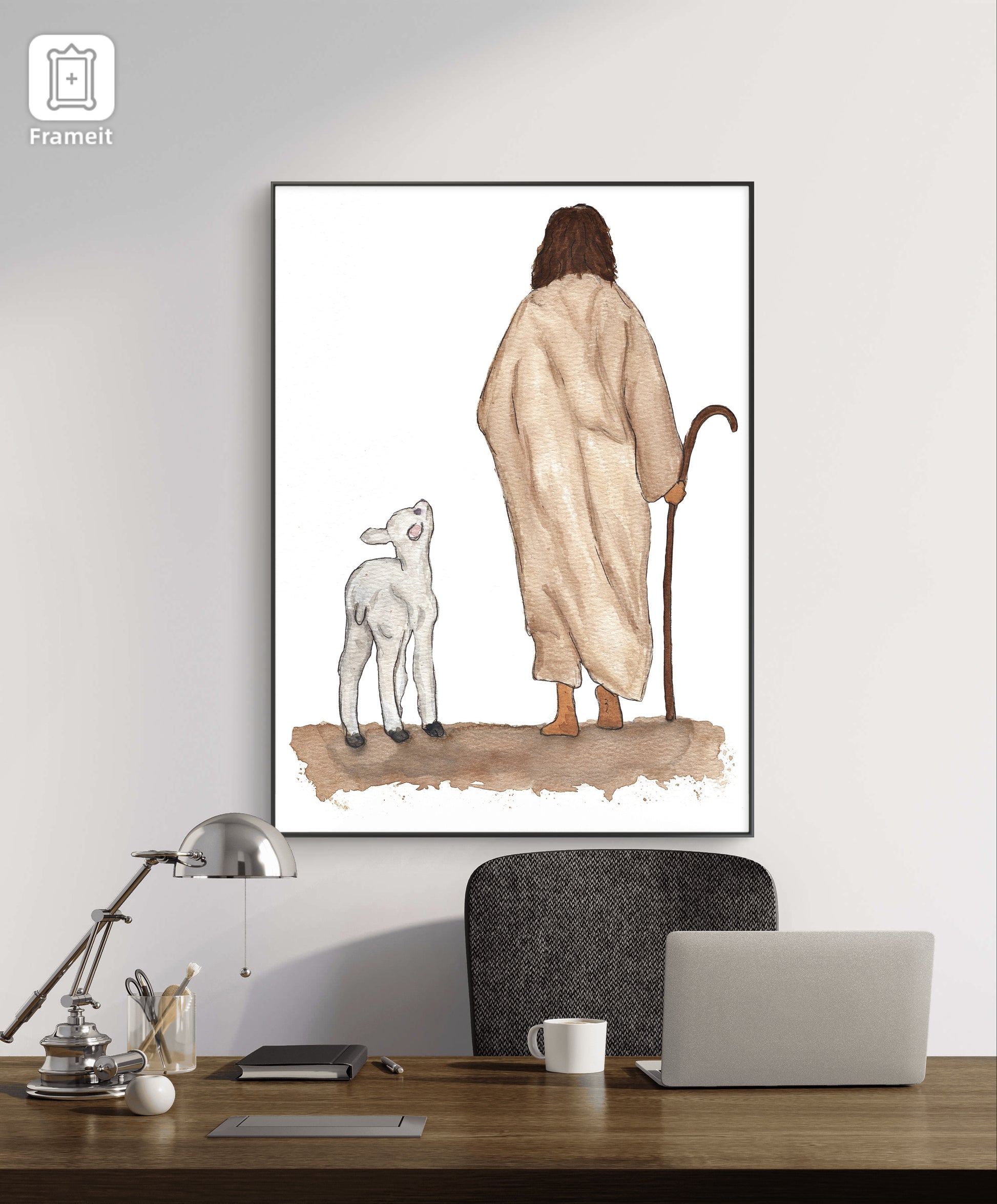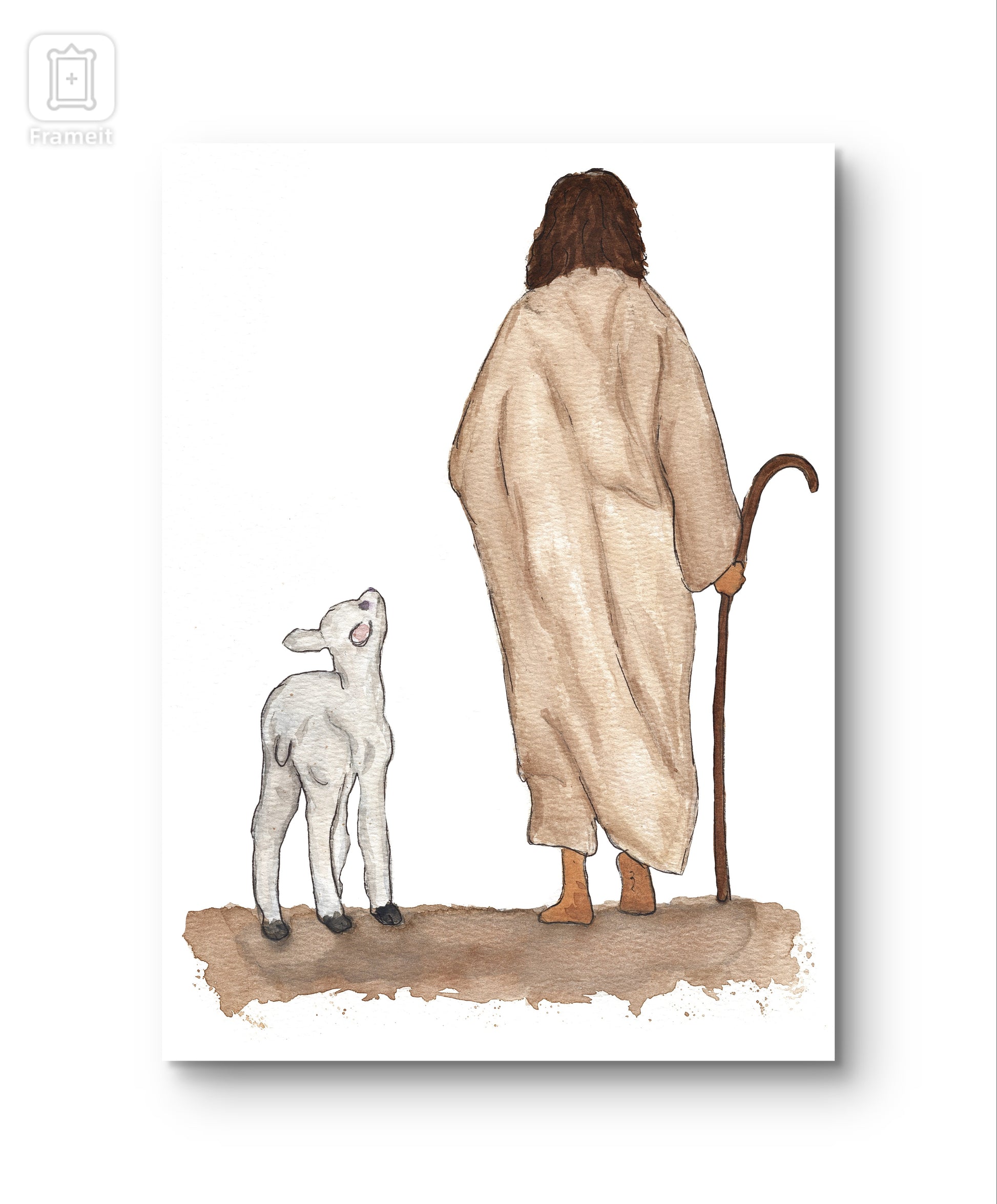 "The Good Shepherd is a watercolor painting depicting Jesus as the caretaker of his flock. Expertly crafted, this piece showcases the peaceful and gentle nature of the good shepherd. This painting serves as a beautiful reminder of love, guidance, and protection."